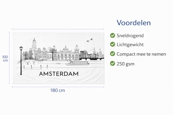 Ontdek Amsterdam op een unieke manier met deze stijlvolle handdoek. De handdoek heeft een levendige stadsprint van Amsterdam en is gemaakt van lichte, sneldrogende stof.